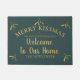 Tapis de noël festif avec le mistletoe d'or sur un vert turquoise profond. Ajoutez votre propre slogan drôle et nom de famille, j'ai dit Merry Kissmas !