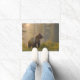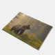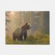 Ce tapis porte un ours grizzli contre un arrière - plan atmosphérique.