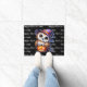 Doormat is shown with a black background and a festive cute Halloween owl print.