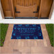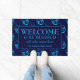 Matelas Hanoukka élégant avec le libellé BIENVENUE & ÊTRE BÉNÉFICIÉ TOUS CEUX QUI ENTRENT ICI plus nom d'espace réservé personnalisable. Le design est un motif dreidel bleu cyan contre un arrière - plan bleu minuit. Tout le texte est PERSONNALISABLE afin que vous puissiez modifier le libellé en fonction de vos besoins, par exemple ajouter le nom de famille, la devise de la famille, la citation inspirante. Grand cadeau pour Hanoukka.