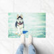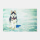 Ce tapis de porte a un chiot coquelicot représenté dessus.