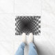 Une conception checkered noire et blanche créant une illusion optique de grande profondeur.