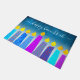 "Bonne Hanoukka." Décorez votre entrée en "style" avec ce tapis de bienvenue personnalisé unique et amusant! Une illustration ludique, moderne et artistique de bougies motifs de saumons dans une menorah vous aide à inaugurer les vacances de Hanoukka. Des bougies bleues assorties de motifs de fausse feuille colorés recouvrent un dégradé turquoise en arrière - plan texturé blanc. Changez le message d'accueil si vous désirez en faire une autre copie ou votre nom. Cartes de correspondance, autocollants, ornements, tasses, produits de la boisson, coussins, décoration de maison, et plus encore sont également disponibles. Quelle façon divertissante de célébrer cette saison festive et d'accueillir tous ceux qui entrent dans votre demeure ! En utilisant les modèles faciles à utiliser, changez le message d'accueil à votre nom ou autre copie, et vous pouvez personnaliser ce tapis Hanoukka sans effort. S'il vous plaît, envoyez-moi un message avec toute question ou demande.