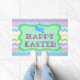 Les chevrons arc-en-ciel et un lapin sucré en font un accueil parfait pour votre porte d'entrée de Pâques.