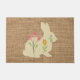 Tapis de porte avec la silhouette de couleur claire d'un lapin de Pâques avec des fleurs de printemps en burlap look arrière - plan. Idéal dans n'importe quelle maison pour un décor rustique de printemps. Conception par Alma Wad.