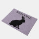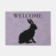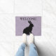 Ce tapis de porte d'accueil extérieur a une silhouette de lapin assis noir sur un joli violet clair avec un motif marbré. Customisez le texte de bienvenue avec le modèle.