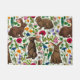 lapins et flore boisée dessinés à la main, fougères, champignons, beriies et insectes
