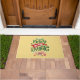 Tapis de porte avec illustration cool. Texte dit Croire à la magie en lettres fantaisistes. Décoré de boules de noël.