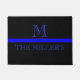 Customisez et personnalisez l'initiale et le nom de famille sur cette ligne bleue mince élégante tapis de porte.