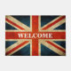 Accueillez votre famille et amis dans le style avec ceci - la natte à la maison bienvenue d'Union Jack de drapeau BRITANNIQUE vintage de grunge. Si vous avez besoin davantage de personnalisation, cliquez sur svp - customisez-le - boutonnent et utilisent notre outil de conception pour remettre à la côte, tournent, changent des couleurs, ajoutent le texte et plus.