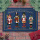 Porte-noisette personnalisée - Joyeuses Fêtes Bienvenue les invités dans le style festif avec ce tapis de porte Nutcracker personnalisé. Quatre charmants Nutcracker soldats se tiennent fièrement au centre de cette conception, dressés contre un arrière - plan bleu tonifiant profond avec des feuilles saints et des baies. La partie supérieure du tapis porte les mots "Bonnes Fêtes", tandis que la partie inférieure offre un espace de personnalisation, ce qui en fait un ajout unique à votre décor de vacances. Parfait pour les entrées, ce tapis de porte ajoute une touche de magie traditionnelle de Noël et de chaleur à votre maison.