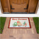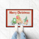 Paillasse de Noël amusante avec chariot vintage en bois tirant chariot avec arbre de Noël et cadeaux.