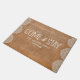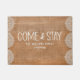 Un tapis de porte rustique moderne de 18x24 qui vous fait vraiment sentir bienvenue. Un grand cadeau pour les jeunes mariés ou les nouveaux propriétaires, notre tapis de porte d'entrée et de séjour personnalisé est dans un élégant burlap et dentelle avec "Come and Stay" dans une police manuscrite moderne et rustique. Personnalisez avec votre nom de famille en lettres blanches classiques. Conçu pour vous par Blackberry Boulevard.