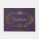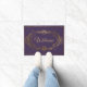 Tapis de porte d'entrée chic en violet avec des graphiques en or d'un cadre antique orné, au milieu. Le texte d'accueil est prêt à personnaliser pour lire ce que vous voulez. Quelle belle façon d'accueillir les invités dans votre maison.