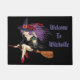 Tapis de porte en noir arrière - plan et imprimé sorcier Halloween. Customisez ce tapis ou achetez tel quel.