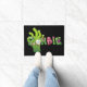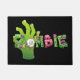 Tapis de porte avec un arrière - plan noir et une impression zombie d'Halloween. Customisez ce tapis ou achetez tel quel.