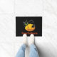 Tapis de porte avec un arrière - plan noir et un citrouille d'Halloween et imprimé de chat noir. Customisez ce tapis ou achetez tel quel.