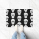 Tapis de porte en noir arrière - plan et imprimé crâne hanté Halloween. Customisez ce tapis ou achetez tel quel.