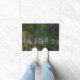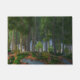 Un stand d'arbres par beau temps. Les grands arbres sont grands et sombres, mais les jeunes pousses en dessous ont une nouvelle croissance lumineuse. En grandissant à travers les feuilles déchus sont le vert et rose et blanc de trèfle et d'autres couvertures de sol.