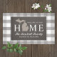 Stylish "Welcome to our home" objets doormat a typographiy design with state of Michigan map. Personalize with your family's last name monogram and your city name Includes a burlap background layer with a rustic textured appearance. Neual colors include dark taupe gray, chaud gray, et blanc.