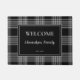 Motif rustique noir blanc plaid, nom de famille d'accueil Doormat. Vous pouvez facilement ajouter votre propre texte, nom et année établie.