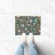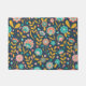 Caractéristiques de conception ce d'art populaire un rose, une orange et un motif floral turquoise sur un arrière - plan bleu-foncé.