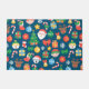 Motif de Noël multicolore joyeux avec père Noël, rennes, elfes, bonhomme de neige, ours polaire, cadeaux, arcs rouges et verts, décorations, sucres de canne, chaussettes rouges, etc.