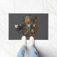 Grand tapis de porte avec une machine de combat méchante chat gingembre, armé jusqu'aux dents et en armure marine futuriste. Fusil dans une main, pistolet dans l'autre, avec assiette de poitrine avec un féroce emblème d'os de poisson. Un double hommage à un film d'action de science-fiction favori de moi et à des chats gingembre partout ; concevoir deux de NoodleWings action cat semaine.