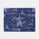 Tour Eiffel, les mots "Joyeux Noël" (Joyeux Noël en français), Paris dans la typographie vintage, et les étiquettes français vintages pour le champagne et le cacao dans le blanc sur un arrière - plan bleu profond avec les flocons de neige bleu-clair font une belle et intéressante natte orientée française. Les articles assortis sont disponibles dans mon magasin de Zazzle.
