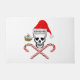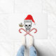 Pirate crâne portant le chapeau de Père Noël avec YO-HO-HO écrit sur casquette. Une paire de sucres de canne croisés est sous le crâne. Comprend un bateau de pirates de Noël à côté du crâne.