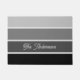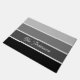 Ce mat à la mode présente quatre bandes dans des gradients d'ombre variés de noir, de charbon de bois et de gris, et votre nom ou monogramme en typographie de script pour un look moderne.