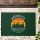 Pins Rustiques Summer Retro Sunset Nom de famille Forêt Cabine Porte verte Mat. Personnalisez avec votre nom de famille, votre lieu, votre année ou votre date et plus.