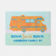 Cette natte personnalisée est parfaite pour votre maison-loin-de-maison sur des roues. Elle montre un camping-car orange et bleu avec un regard peint et tiré par la main. Le rv voyage en bas de la route. Le texte indique, "errez le bonbon erre."