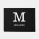 Tapis de porte noir et blanc personnalisé avec votre nom de famille et la lettre initiale monogramme.