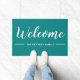 Paillasson Nom de famille turquoise et blanc - mat de bienven