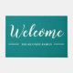 Porte d'accueil en Turquoise et blanc personnalisée avec nom de famille.