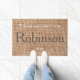 Élégant nom brun ferme pays burlap texte porte. Une belle couleur assortie en marron, monogramme nom de famille porte.