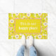 Un motif de gorge lumineux et ensoleillé présente des fleurs blanches avec des centres rose et vert sur arrière - plan jaune. Zone de texte jaune centre avec texte personnalisable "This is our happy place"