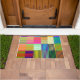 Ce tapis de portes a un design Bauhaus de lignes de différentes couleurs formant des boîtes. Lumineux, coloré et amusant !