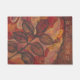 Un tapis de bienvenue aux feuilles peints dans de belles couleurs automnales de rouge, brun, jaune, orange et crème.
