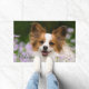 Un chien blanc et rouge Papillon assis dans un pré entouré de Cuckooflower. Le Papillon est une race de jouets alerte, amicale et très intelligente. Petite photo de doggy prise par Katho Menden, ce tapis de porte Welcome est une idée cadeau enchanteresse pour les amoureux de les chiens.