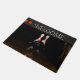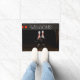 Un paillasson avec une photo de deux épingles de bowling sur le point d'être abattu par une boule de bowling.