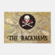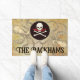 Avast,ye lubbers! Shiver me timbers! .a A dashing Jolly Roger, brandishing a cutlass in its teeth. Surrounding the Jolly Roger be a pair of the deep's most notorious denizens - two mighty octopuses! Savvy? Make it yer own by personalizing it with yer name. It'll be the perfect treasure for yer own front porch or garage, or a shiver-inducing gift for any pirate at heart!