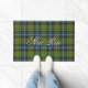 Paillasson élégant et intéressant de porte comportant le plaid de tartan écossais merveilleux de chasse de MacRae de clan, avec le nom fait sur commande.