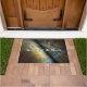 Image fractale multicolore représentant des patchwork opposés, des surfaces métalliques parallèles sur un arrière - plan étoilé. Ajoutez votre propre texte.