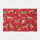 Chiens de Noël mignons en tenues de vacances festives. Bordures des Terriers portant des chapeaux de Père Noël, des bois et des chandails de Jacquard sur un arrière - plan rouge avec des ornements épars.