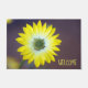 Ce tapis de portes personnalisé pour l'entrée de la maison ou du bureau présente une image de gros plan d'une fleur jaune d'Osteopermum, un type de marguerite africaine. "Bienvenue" est ajouté en gros caractères faciles à lire. Le tapis mesure 24" x 36" et a un front lisse et un dossier en latex antidérapant. Il a également un bord renforcé pour résister à la friture, est à la fois résistant à la décoloration et à la moisissure, et se nettoie facilement avec un jet d'eau. Idéal pour les entrées couvertes comme les porches, appartements, bureaux, condos, etc. N'hésitez pas à me contacter par Zazzle si vous avez des questions sur ce tapis ou souhaitez aider à transférer cette conception à un autre article. Je suis heureux d'aider à m'assurer que le design s'adapte correctement.