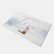 Personnalisez votre nom sur ce tapis de portes de vacances chic avec un renard sur une scène d'hiver arrière - plan boisé.