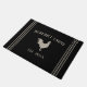 Bienvenue dans votre demeure avec ce charmant tapis de portes rustique de style ferme. La conception personnalisée comprend votre nom de famille ou votre nom de ferme en lettres brunes neutres, ainsi que votre année d'établissement et une illustration de coq. La bande de corde détaillant un riche arrière - plan noir complète la conception.