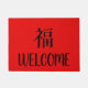 Le paillasson avec le Chinois conçoivent comporter un caractère chinois pour le bonheur et la bonne chance. Asiatique inspiré dans le rouge et le dos.